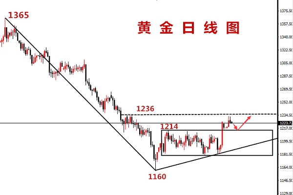 投资应是一种理性的行为,最可怕的不是你的眼光而是情绪! K线的波动总是在时刻挑战我们的神经,短线快进快出说到容易,当你习惯于短线后就会被一时的波动折磨,我见过无数的散户投资者因为几个点的波动而心乱如麻,大家都会归结于自己心态不好,可是少有人去想如何避免,嘉娴还是要郑重告诫大家,既然自己做不到面对行情波动波澜不惊,就退而其次少操作,耐心等待合适的点位,别懊恼错过盈利,你若有心,必有利润回报,怎么找合适的点位,我相信你坚持看我的文章必然会有收获,大浪淘沙就让市场去证明真伪。 许嘉娴——追踪市场动态,每日行情解读! 昨日行情,黄金早盘回落1218后逐步上涨,凌晨最高反弹逼近1230,不过最终没有突