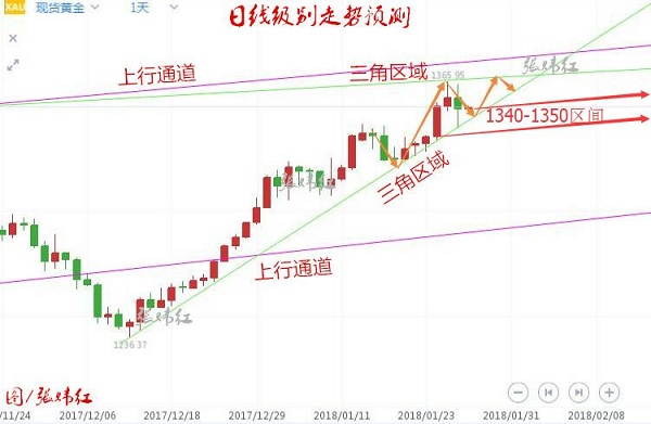 受到数据周预期影响,周一黄金走出一个震荡下跌的走势,回踩1340美元区间。 ====市场消息==== 月初数据周来袭,特朗普国情咨询携手美联储利率决议及货币政策声明,能否提振美元走势,非农数据靓丽与否将影响三月份加息预期。 特朗普上周制造了美元反弹,黄金下跌的市场行情,在短期内让黄金承压,但是只靠动动嘴皮子或许无