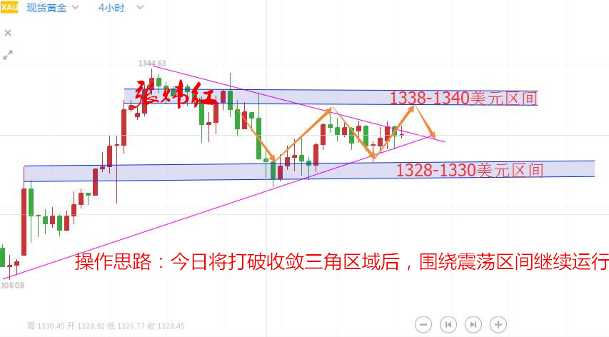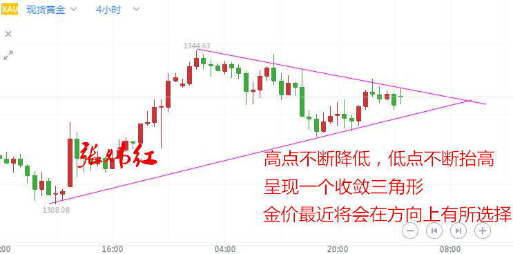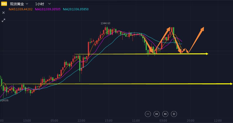 透过纷繁复杂的表象,看到市场的本质,不被接憧而至的消息打乱投资的脚步,才能更好的把握。 ====行情回顾==== 近两日金价黄金维持在一个窄幅震荡区间,在1335美元附近徘徊,昨日晚间美盘时候进行了一个快速下跌诱空,随后上扬重新回归到1340美元区间震荡。 ====市场分析==== 一些消息面或将遮住你对行情的客观判断,市场往