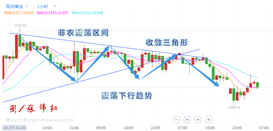 张炜红:1.10黄金暴涨,美元黄金冰与火之歌如何反转 目前黄金受到美元指数的影响较大,同时市场上多头开始减持,空头持仓也持续增加。 ====市场回顾==== 近期黄金走出一个震荡偏弱的走势,本周前两天不断试探下方低点,接连突破1315美元,1310美元关键点位,试探低点下方1308美元支撑,市场普遍认为黄金将延续下跌走势,黄
