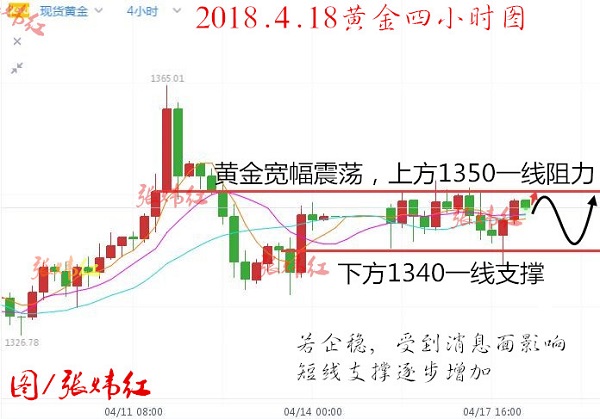 纵观市场,行情起起伏伏,各人观点不一,才造就市场波动预期,能否在其中脱颖而出,则需要更加睿智或者好运相伴。 ========市场分析======= 上周叙利亚局势紧张,黄金获得明显避险情绪支撑,本周市场表现相对温和,紧张局势有所缓解,周初呈现宽幅震荡,炜红认为黄金遇到明显上行阻力。 近期美元表现弱势,受到特朗普言论影