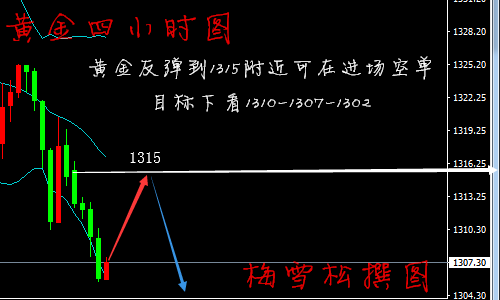 今日而言,1315支撑看似岌岌可危,随时都可能破位,但价格就是差那么一点,始终没有下去,欧盘时段价格向上攻破1318压力至1319,20:30GDP数据利空金银原油,随后遭到快速打压,再上升至1322,形成了一波完美的诱空。1315是日线布林带下轨支撑,同时也是1302与1307上升趋势线所在,在这里出现一波反弹,是合理,也是正常的,
