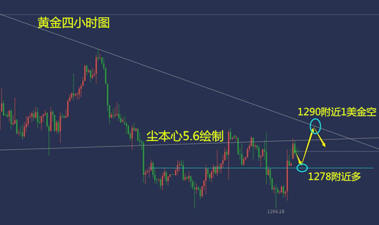 尘本心:5.6黄金原油精准解析思路,假期后金油形势一片大好快快跟快快赚 上个月也就是4月5号的非农是大幅利空,但黄金却走出了反抽走势,随后3个交易日内黄金出现慢涨形态,走出了20美金的上涨走势,但第四个交易日快速大跌。5月3日,也就是上周五非农数据虽然不像上个月那样大幅利空黄金,但是同样的在利空数据影响下走出反抽,所以本周也要防着黄金连续小涨之后的快速急跌。技术面来看,小时周期和4小时周期都是在1268这里支撑反抽,也形成了短线底部形态,周五收阳走高,所以在短线来看,黄金是继续顺势看涨的信号,上方关注非农周的高点1287。早间黄金跳空高开,目前为止,并没有走出连涨走势,所以日内黄金暂时以震荡