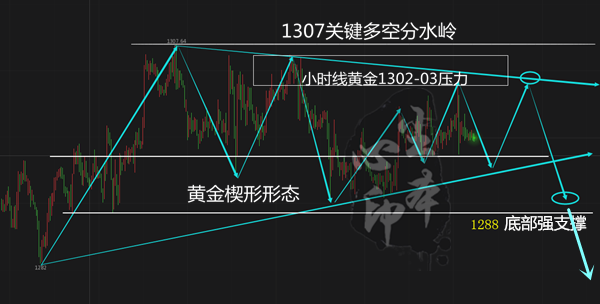 尘本心:6.15世界杯助力黄金破高,端午黄金依托1309阻力做空 6.14周四黄金跟美元出现了同涨的局面,估计很多人会感到很意外,包括尘本心老师。毕竟在美指大幅走强,零售数据以及初请双双利空的局势下,黄金既然大涨走突破,这走势确实不符合逻辑。但是黄金偶尔就这么任性一回,我们必须以平常心对待。 昨日美指的强势反弹,这很好理解,美联储加息以及数据的良好表现,多重利好导致美指大涨。不过黄金的上涨,估计很多人不能理解,在尘本心看来,原因可能是由于加息之后,市场做多情绪的一波释放导致。现货黄金在加息前一两个礼拜,金价都压制在1302下方低位运行,区间横盘意在筑底,然后加息利空出尽做多情绪爆发,这种爆发