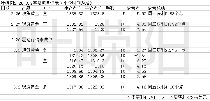 文章摘要:1、本周行情回顾2、黄金技术分析3、黄金空单解套4、黄金后市如何操作 黄金本周行情回顾: 周四(3月1日)亚欧盘中,因市场预测晚间鲍威尔的国会政策将再度偏鹰,金价延续震荡下行走势。美盘时段,美国PCE数据率先出炉,数据的强劲表现提振美元大幅飙升,一度逼近91关口。随后,因鲍威尔发言意外由鹰转鸽,加上川普