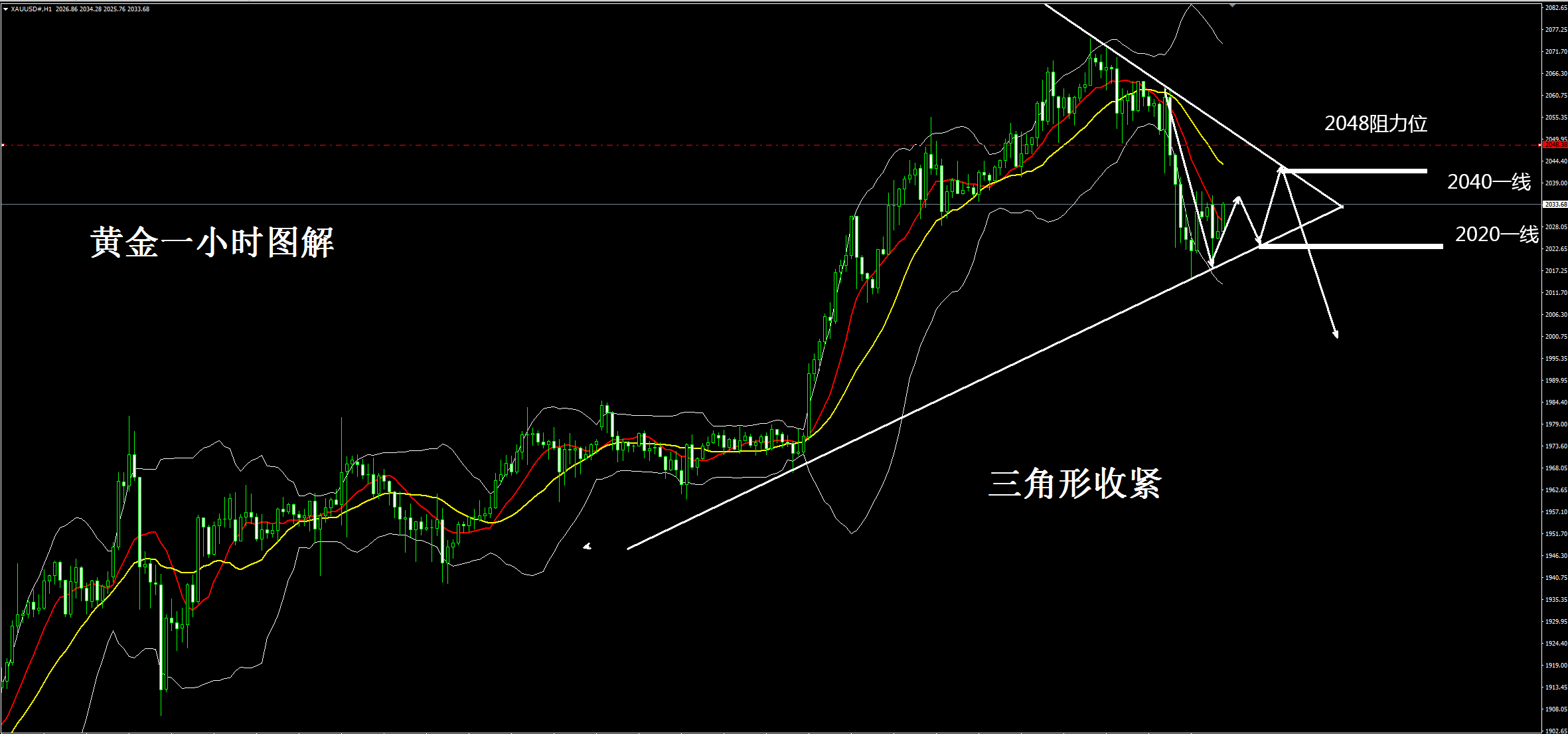 前言:操作上战略上要藐视市场,战术上要重视市场,对于目前的行情仍要保持清醒,市场没有永远的多头也没有永远空头,短线做波动,中线做波段,长线做趋势,我们在不断的寻找可重复赢利的再现交易。对于交易而言必须要明确多空信号,果断进场,交易要趋向于第一种走势,堤防于第二走势,如果错了就要注意第三种走势,金海踏浪、赢在节奏!黄金原油市场是一个智者的游戏,勇者的乐园,踏准节奏,波段操作,安全第一,控制风险,稳定赚钱,持续赢利。 黄金短期已见顶,上周五晚上大非农已奠定空,大非农数据利空黄金,黄金今早开盘继续维持在2040下方运行,触碰该该阻力位,直接就是反手空,就是这么硬气,新的一周继续干,继续数钱; 28
