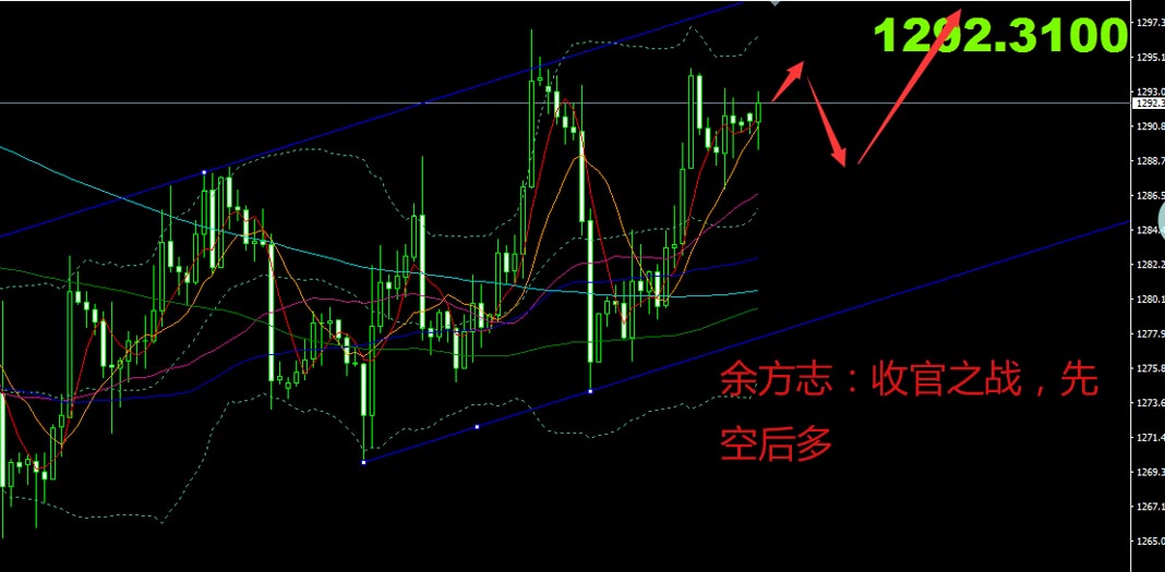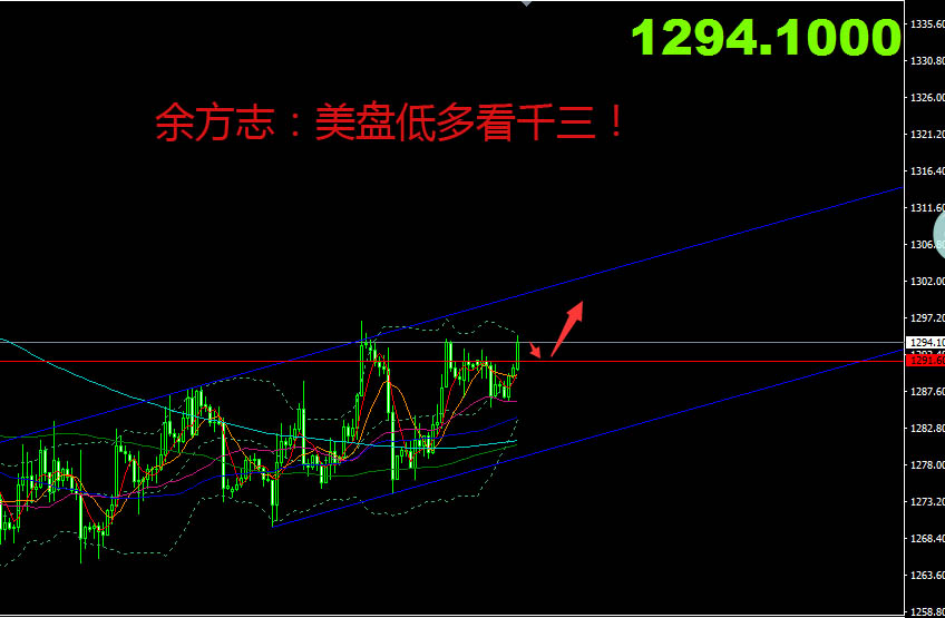 余方志:11.27美盘黄金建议,低多看千三 黄金: 黄金昨天写周评的时候,可以看得到四小时MA5勾头向下,所以认为会回调一波,因为四小时是看空的,自早上回调了两个点以来,白盘可以说是一路慢涨,中午接近1291偶的时候就可以看得到四小时MA5拐头向上,这个时候肯定是不能空的,我反正是没空,虽然我周评给的空,但是也要看盘
