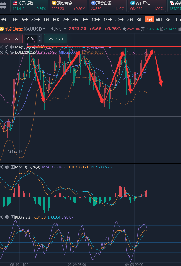 任何一种交易策略都只是修行的工具,工具并不能****让你稳定盈利,让你稳定盈利的应该是一个好的心态。分析永远是辅助,策略才是赢利的基本。对于技术,没有对错,关键性的分水岭,易成为行情转折的拐点抑或助推趋势的延伸。但交易中或结价操作中,咱们必须果断,在对的方向里坚持,而当方向错误时,调整战略就是进步,转身就是盈利。道路虽有坎坷,但跟随市场的指引总能令我们柳暗花明。 ————————消息面 周一(9月9日)亚市早盘,现货黄金窄幅震荡,目前交投于2490美元/盎司附近。金价上周五冲高回落,因为非农新增就业人数不及预期,金价一度创近三周新高至2529.06美元/盎司附近,逼近历史高点,但很快回吐涨幅