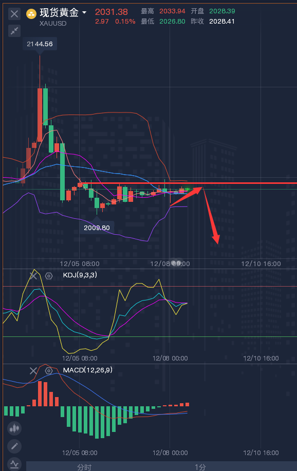 不管行情大小,钱赚到手里才是真的,只要在市场就是数字游戏,但玩游戏就要懂规则,就要守规矩,就要明纪律。错过了没关系,做错了不要紧,不要让自己本不坚定的眼神变的更游离,让自己本无方向的交易变的更被动,看不懂就休息,总有一波行情,总有一道风景是为你而准备的 ————————消息面 周五(12月8日)黄金价格交投于2031美元/盎司附近,美国劳工部周四公布的数据显示,截至12月2日当周,初请失业金人数增加1000人,经季节性调整后为22万人。由于假期的原因,每年这个时候初请失业金人数波动较大,因此很难在就业市场上获得明确的信号。尽管如此,劳动力市场正在放缓。有分析师表示,市场对利率预期的预估过于超