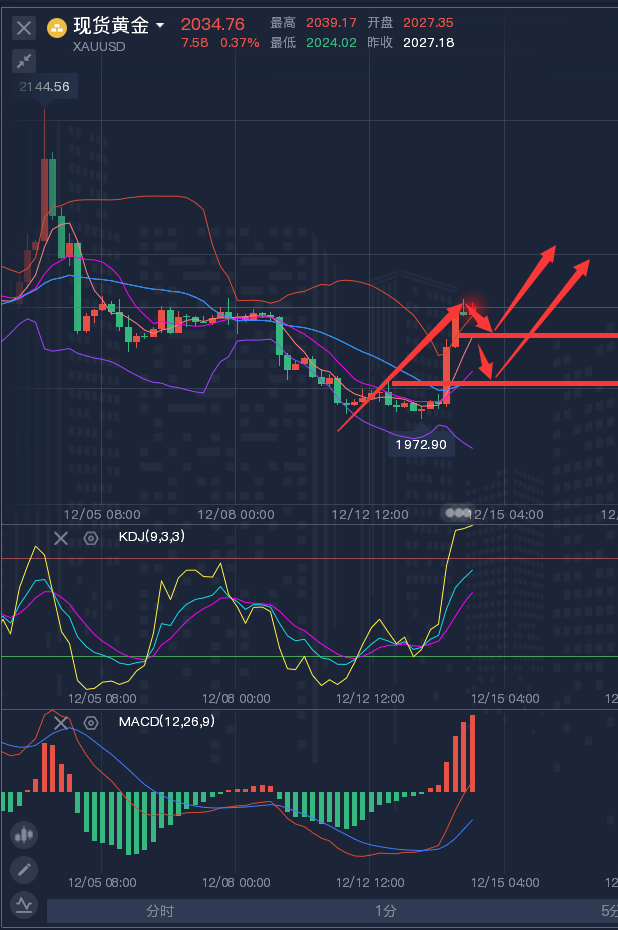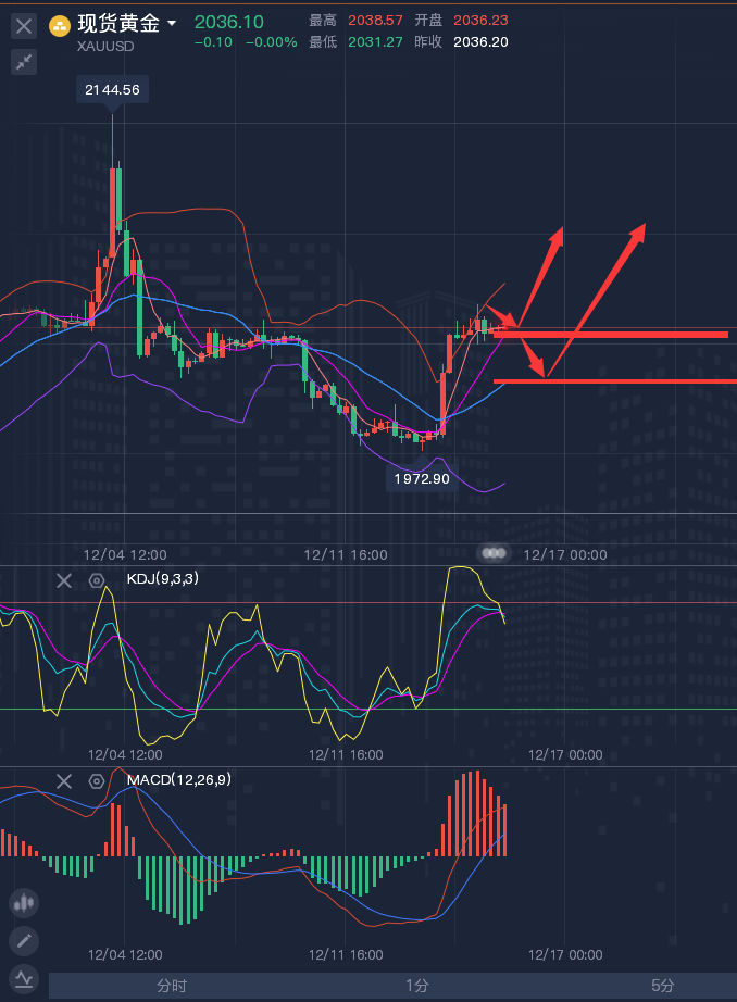 在黄金白银这个高风险高收益的市场,不是谁随随便便投入就能轻松赚个盆满钵满。它是需要专业的分析团队做好风控,依靠专业的技术,良好的心态先减少本金的亏损,再去放大利润的过程。山不在高,有仙则明。水不在深,有龙则灵。我个人认为,做投资最重要的不仅是需要一个好的平台和产品,而更需要遇到一位有实力、负责任的指导老师。如果你的能力不足以支撑你现在的现状,那么你就需要一位伯乐帮你指点迷津,需要一位军师助你操控大局,一次尝试,就是一次机会!一次选择,就是一次转折!佛度有缘人,我带有心人。 ————————消息面 周五(12月15日)黄金价格交投于2036美元/盎司附近,在美联储对美国货币政策发表出人意料的鸽