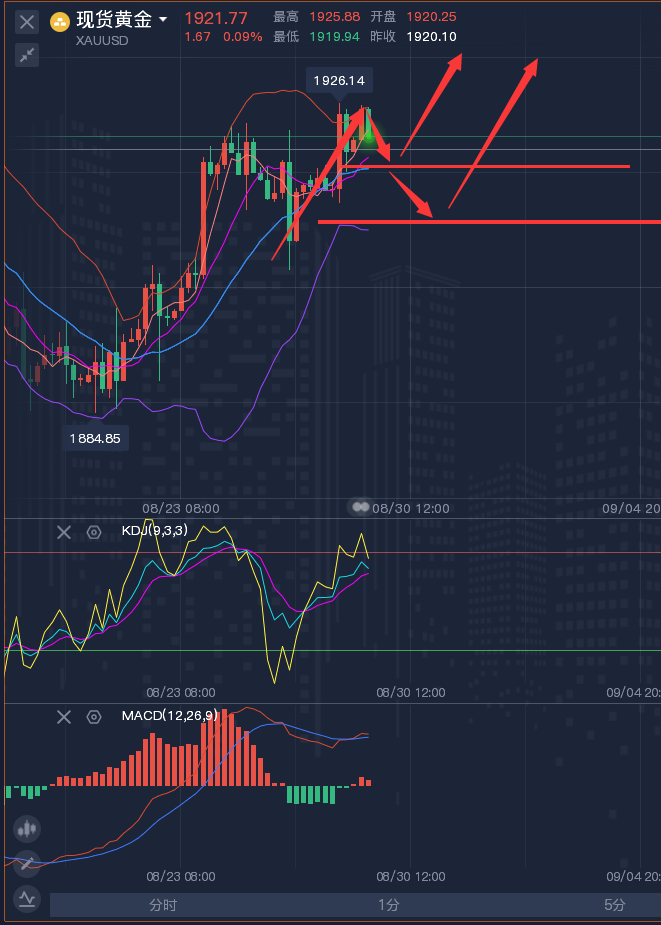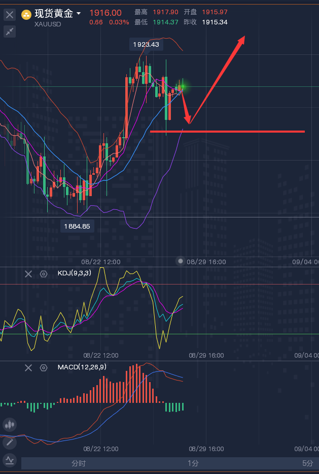 渡己者才能渡人,难熬的不是你每天都在盈利,而是处在逆境时如何解决,人的意志会随着时间的流逝、客观事物的影响而动摇,顺境时要内求,自知者才能明智,才能走向更高点,逆境时更要内求,强大自己才能克敌制胜!一切外在的根,都源自于我们的内在!我们无法改变客观事物的不确定性,但只有从始而终去遵循客观事物的规律,才能走的更远!而所谓的规律其实就是历史数据中的既成事实!人性难易,所以,历史也会重演!正如春夏秋冬,四季轮回,生老病死,喜怒哀乐一样!市场也是如此!因为市场的本质就是人性的博弈! ————————消息面 周二(8月29日)现货黄金小幅上涨,目前交投于1924.11美元/盎司附近,尽管市场对美联储1
