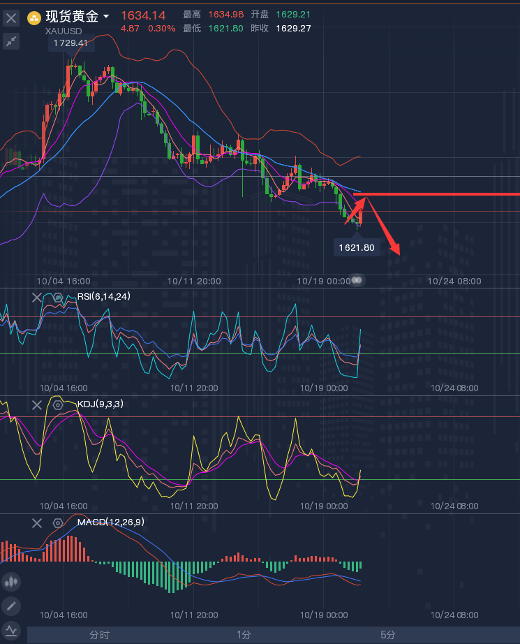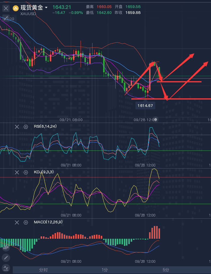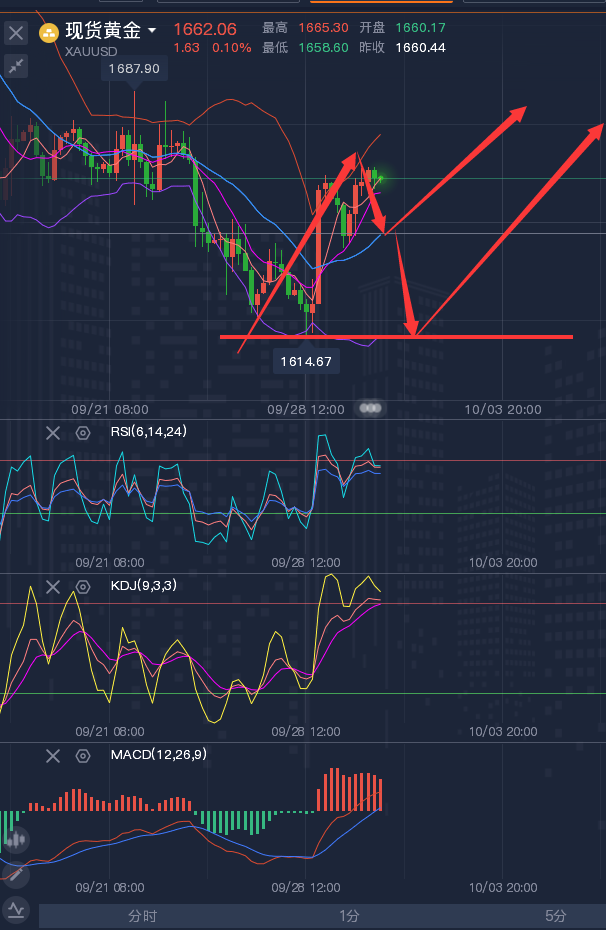 投资就像开车一样,开车谁也不能****不会出事故,但是只要我们遵守交通规则,不酒驾不违规,带好刹车控制好风险,我们就可以将事故发生率降到最低,甚至不发生。我们做投资也一样,只要严格执行操作建议,控制好仓位,严格止损,外加精准的操作点位,我们就可以最大程度的提高赚钱的胜算,使得风险最小化,收益最大化,每一位在读这篇文章的人,感谢与你相遇! ————————消息面 周三(9月28日)现货黄金震荡微跌,目前交投于1625美元附近。虽然周二亚洲时段美元指数展开回调,再加上地缘局势担忧和全球经济衰退担忧,一度帮助金价反弹至1642附近,但美国核心耐用品订单等数据好于预期,美联储官员继续强化加息预期,美