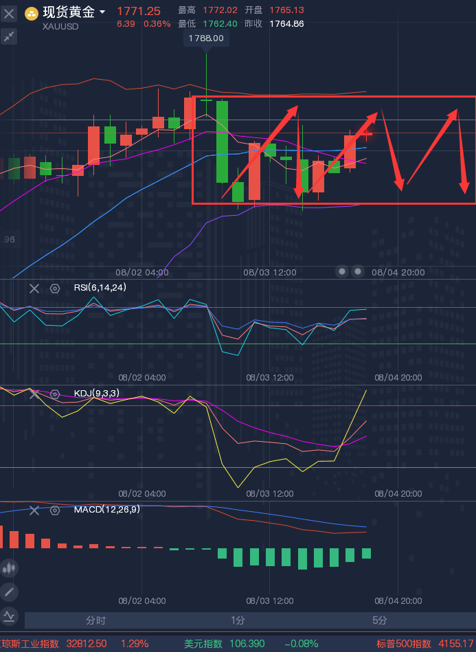投资市场,是风险与收益的博弈,小止损博取大利润是投资的魅力,投资者不要仅看到收益,而忽视掉风险;实质上,成功的交易者,更应注重的是风险,钱是赚不完的,而本金却是有限的,所以只有在****有限的本金为前提,才能去博取利润,收益于风险是并存的,可以说投资的成功取决于对风险的控制上面,风险控制的越小,成功的几率也就越大! ————————消息面 周二(8月2日)现货黄金震荡走高,一度创7月5日以来新高至1780.39附近,日线有望录得五连阳,主要受到美债收益率下跌和美元下跌的支撑,因为市场担忧美国经济衰退,预计美联储将会放缓加息进程,美国ISM制造业PMI创两年新低,美元指数再度刷新逾三周新低,给
