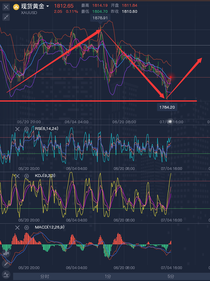 龚关铭老师的操作原则一直都是以压力、支撑为准,高空低多、以震荡极限为防守,不贪、不恋;注意方向,选择关键点,关键不破或不过,就是震荡,不猜测、不犹豫。以稳健为前提来布局!提醒各位,所有单子只要被套、方向做反,就一定不要盲目抗单。与行情对堵、盲目抗单,只会造成自己更大的亏损,从而无法挽回。一定要记住自己做投资的初衷:小亏大赚,稳健获利,积小胜为大胜!一旦产生亏损,要及时总结原因出现在哪里,要让亏损的资金产生他的价值,如果你在投资路上遇到了困扰,经常做错方向和进出点位把控不好的朋友,可以一起探讨,这样可以避免不必要的损失。 ————————消息面 周一(7月4日)亚市盘初,现货黄金窄幅震荡,目前