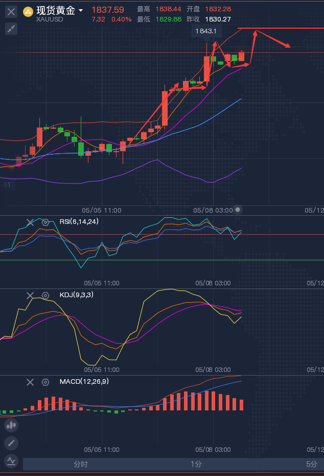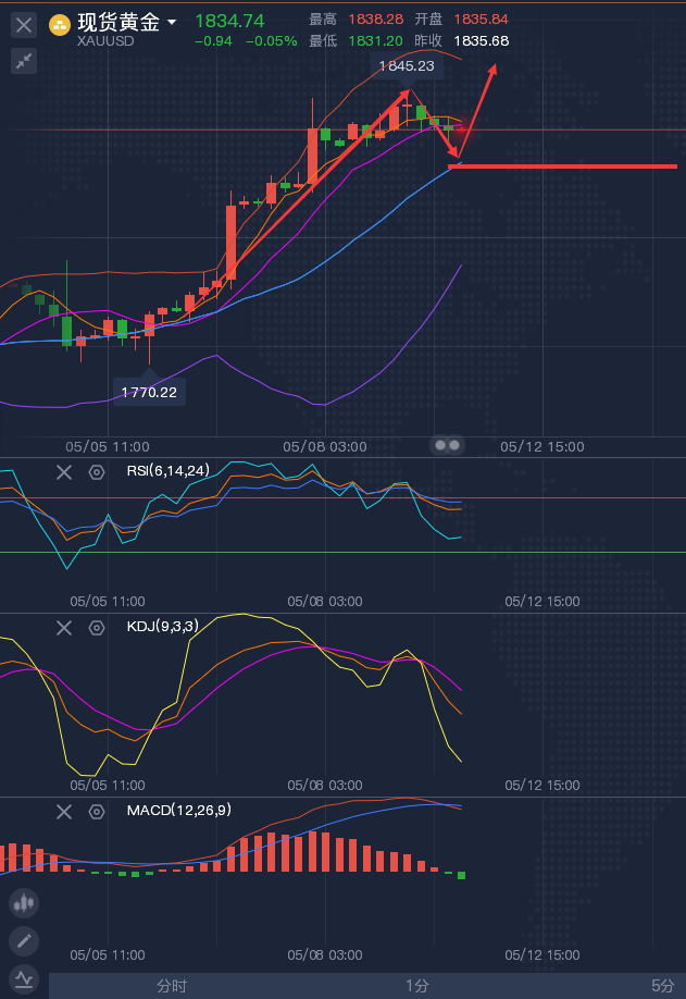 当你的才华还撑不起你的野心时,那就要静下心来学习,当你的能力还驾驭不了你的目标时,那就应该沉下来历练,只有通过学习、交易、总结,你才会明白,其实自己真的不是不被市场接纳,只是以前不愿意改变而已,投资有两种,一种生理性投资,是为了解决温饱,另一种,属于精神投资,是实现人生的价值,是与人性的贪婪和恐惧进行博弈和赛跑。大家好,我是龚老师 ——————消息面 本周(5月10日-5月16日当周)多国将相继公布重磅数据,包括美国4月CPI、PPI、零售销售、初请等,欧洲经济景气指数及投资者信心指数,英国GDP及中国CPI。原油市场方面,将迎来石油输出国组织(OPEC)月报及美国能