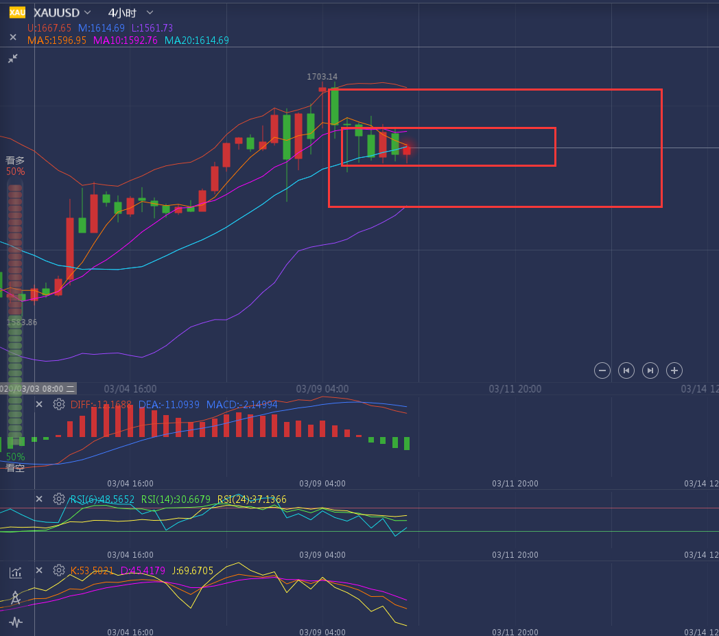 交易核心思路方案必须是经过了长期大量的实战成败之后,并在反复的总结、学习与深思中形成的对市场高度的认知,并将自己不断总结提高的认知反复地指导实战并在实战中不断加以充实完善,在长期反复不断轮回的之后形成的相对固化的能够指导交易生存并发展的核心交易准则的概括和总结。不要拘泥于和过于相信书本上的一些东西,一定是需要结合自己的交易路程进化而来的方案,因为每个人都是一个不同的个体。 ——————消息面 3月18日——周二美欧各国出台一系列刺激计划,这使得市场对于政策力度不足和流动性稀缺的担忧情绪缓解,黄金结束六连跌走势。短时间市场的焦点再次转向评估公共卫生事件对于全球经济的影响,这增强了黄金的吸引力。