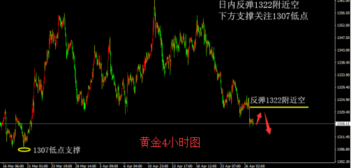 消息面解析: 4月25日,随着10年期美国国债收益率超过3%,通货膨胀率上升,美元指数至91.06附近。而EIA数据也将于晚间公布,如果美国库存超预期,预计价格会出现波动,因为市场已经显示对美国每周石油数据极为敏感。 黄金美盘行情预测: 近期行情走势延续性都不是很强,做单要及时获利,短线黄金走势依然偏弱,黄金亚盘走弱