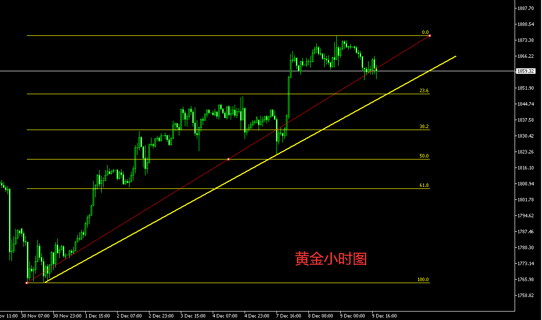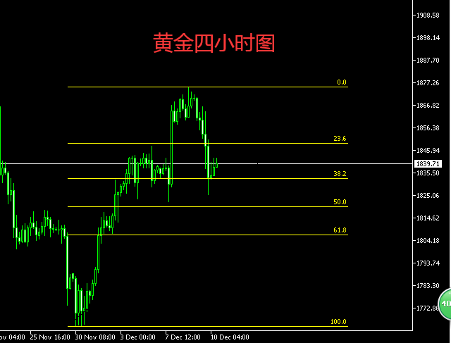 欧美盘行情分析: 黄金早盘最高反抽到1842附近后开始低位横盘,我们早盘策略给出了不破1842-43做空的思路,目前小赚,持有的朋友注意小赚先离场。早盘低位横盘,并未延续昨日尾盘的跌势,所以今日行情可能先会反弹,先规避风险,再去考虑利润! 黄金早盘低位横盘,走势并不算太弱,预计欧美盘以震荡修正为主,操作上切勿追单,争取卡在区间压力支撑点位附近去操作,这样可以用小损博取更大的利润! 我们先画一个黄金分割线来看目前大概的一个支撑压力,看这轮1764反弹到1875的黄金分割线。0.382分割线支撑在1832附近,昨日刺破马上收了上来,0.236压制在1849附近,50%分割线支撑在18