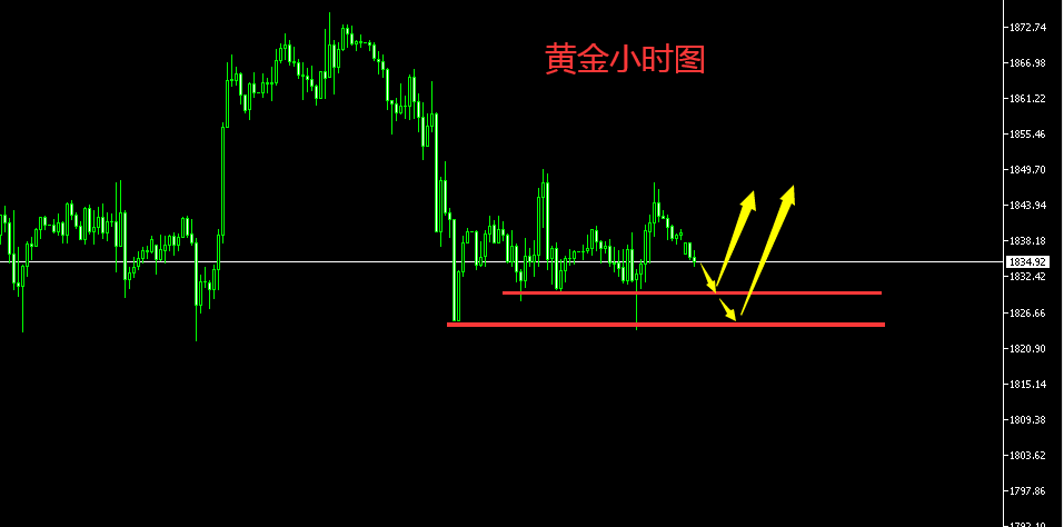 今日行情分析: 早盘平开,稍有回落,周评中大方向大趋势已经给大家分析过了,周线偏空,日线震荡,四小时线偏反弹。所以近期操作上先多,到了周线日线关键压力位再去参与空单! 短线上关注1833-1835位置的支撑,若午后不破此位置即可参与多单,跌破这个短线支撑,则靠近前期1825的低点支撑再去做多。总之,今日行情先看反弹再去做空!上方短线压力仍然在1840-1843位置,强压在1849-1850附近。 简单理解,今日行情早盘先关注1833-35位置的支撑,早盘不破午后参与多单,目标看1840-1849位置。若跌破1833-35的支撑,在1827附近再次入场做多,破1823离场,目标看1