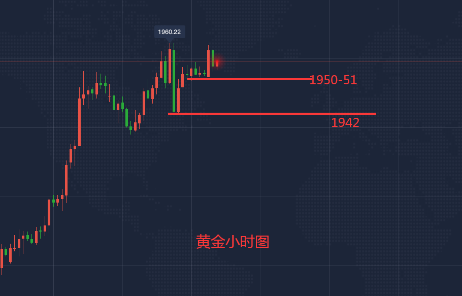 今日亚欧盘行情分析: 周末拜登获得超270票,即将当选美国下一任总统,但是 川普 明显不会善罢甘休,各种手段只会徒增笑柄,但是这些手段会刺激黄金的避险需求,所以近期行情尽可能去低多为主,一定要做好风险控制,防止不必要的损失。 黄金周线出现吞没式的大阳线,吞没了近6周的宽幅震荡区间,所以黄金整体而言震荡看多为主,这个没有丝毫疑问。今天早盘短线拉升,最高触及1960附近,持平周五高点位置,但是并未突破,若能突破,那么将看涨到1973-1993-2015位置。 今日早盘起涨点位置在1950-1951位置,亚欧盘此位置不失守,突破1960问题不大。强支撑在周五尾盘回落的低点1942附近,