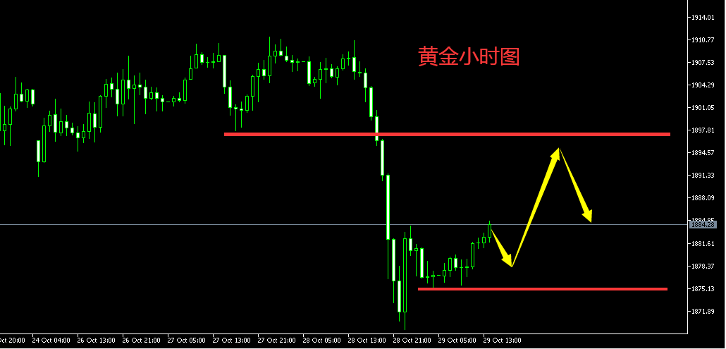 今日亚欧盘行情分析: 大选临近,市场上的机构和投行都在观望,这也导致了黄金近几天都是10多个点的窄幅震荡,没有太大的参与性。对待这种行情,可以选择放弃不做,多看看就行。如果想做,卡好关键点位,轻仓试试水就行,就当娱乐了。 近期行情没有太多分析的价值,窄幅震荡,卡好区间操作即可,不要追单就行。下方短线支撑在昨日美盘回落的低点1898位置,强支撑在这段窄幅震荡区间的底部1894附近。上方短线压力在之前高点1914位置,强压在下跌口1920附近。日内关注小区间1898-1914的得失,不破小区间就在小区间内操作,破位则围绕大区间1894-1920高抛低吸即可。 简单理解,今日关注小区间