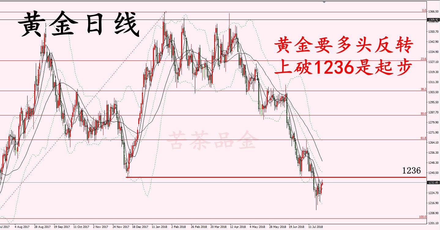 苦茶品金: 7.26 黄金是否开始筑底?原油反转多头趋势? 昨日的欧美谈判,结果不如人意,虽然在时间上川普延长了时期,但美国依然或对 2000 亿美元汽车加征 25% 关税,而受到此次谈判的影响,美元大幅下挫逼近 94 关口,而黄金也迎来了近期最大幅度的反弹,金价重返 1230 关口上方,创下一周新高。 今日将聚焦晚间 19:45 的欧洲 7 月的利率决议已经 20:30 欧洲央行德拉基的新闻发布会,届时在 20:30 还将迎来美国初请失业金人数,晚间这三则要闻将会对美元指数造成很大的影响,黄金目前无限接近上方 1236 阻力位,后市黄金能否“筑底”成功,今日将会是很关键的第一步。