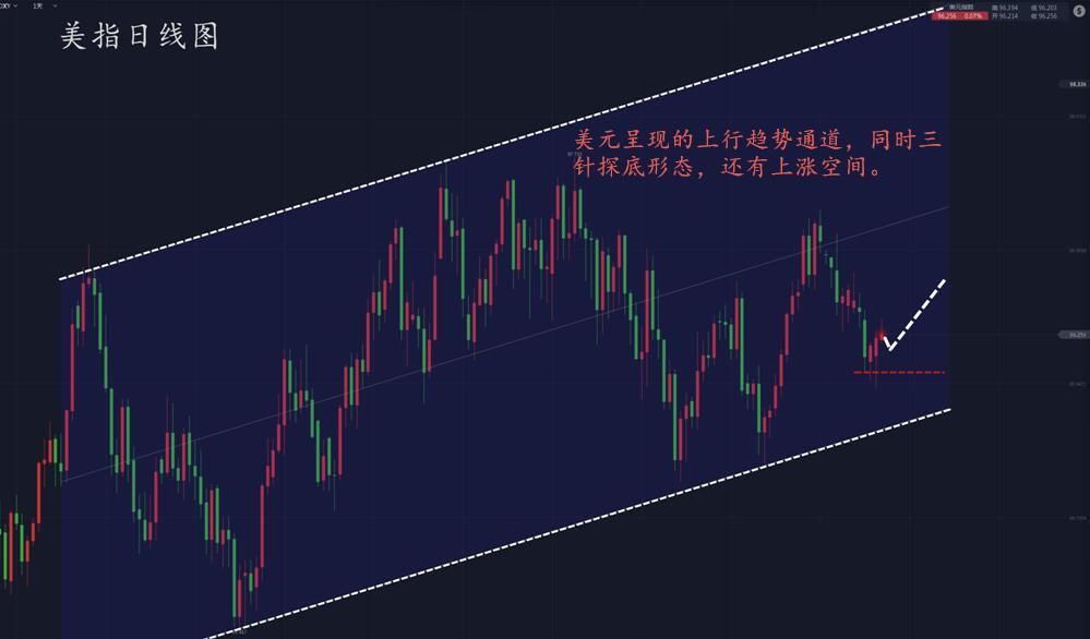 ——美元或将迎来进一步的上涨 1、隔夜美国ISM制造业PMI,以及新屋销售等经济数据强劲,美元冲高,最高来到97.02,刷新2月19日以来的最高水平。美元企稳96.80附近支撑后,有望启动新一轮的涨势。一旦涨破97.00-97.08阻力,则下一目标指向前期高点97.37甚至97.50水平。; 2、受表现强劲的美国经济数据推动,美元继续表现强势,一度突破97关口。北京时间周三晚间,有“小非农”之称的美国ADP就业报告将出炉,预计数据表现将对美元、黄金等资产产生影响。此外,今日投资者还将迎来纽约联储主席威廉姆斯的讲话,鉴于这位美联储“三号人物”讲话的影响力,市场可能会出现波动。 3、邱亦昊总结: