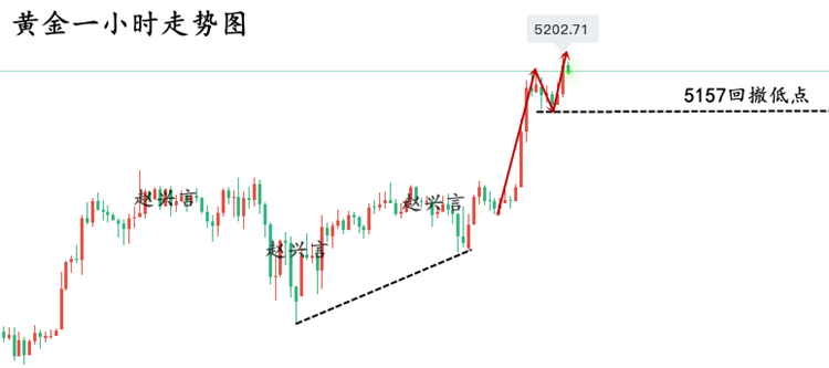 黄金在2026年登顶避险之王,不是偶然,而是时代的选择。它的每一次上涨,都在诉说一个事实:当纸币可以无限印刷,当承诺可以随时撕毁,唯有那些不依赖任何权力、历经千年考验的资产,才配称为“终极财富”。它的光芒,映照出美元信用的动摇,地缘秩序的碎片化,也映照出人类对稳定、对信任、对永恒价值的深切渴望。 站在5000美元的历史高点回望,我们或许正在见证一个旧金融纪元的落幕,以及一个新秩序的黎明。而黄金,正以它沉默而坚定的光芒,照亮这段转型之路。它不仅是避险之王,更是这个不确定时代的定海神针——在动荡的世界中,守护着人类对价值与秩序的最后守望。 对于当前黄金走势的看法! 黄金今天白盘再度连涨,做多也不