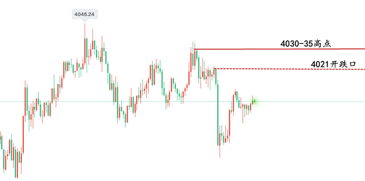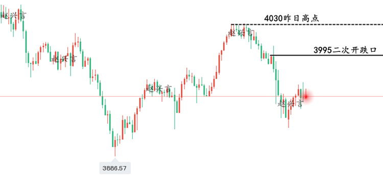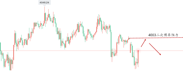 隔夜美元在美联储鹰派信号下大幅冲高,但周四亚市却小幅回落,****停摆危机与美中贸易乐观情绪交织,避险资金正加速涌入黄金。金价似乎有望终结四连跌,4000美元关口近在咫尺,是多头反攻的号角,还是空头诱捕的陷阱?下面兴言来给大家讲解讲解! 对于晚间黄金走势的看法! 黄金在欧盘开盘后,大约也就是吃晚饭的时间,黄金突然从3975一线极速上升至4011一线,也就只用了15分钟的时间,基本上是连涨破高,而兴言在欧盘策略也是给大家说到反抽3995-4000的位置可以做空,就这轮上涨,除非你是挂单,不然正常应该是止损不了还小小获利了的,整体上看冲高回落的思路是没多大问题的。 那么晚间来看,黄金当前一直在3