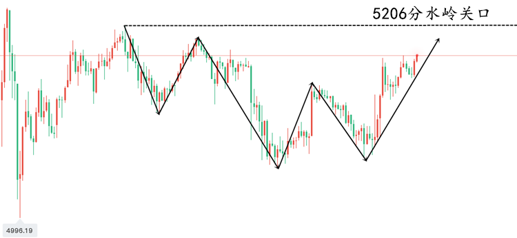 黄金晃晃悠悠的始终在5180附近盘整,早盘开盘之后一直没有大的变动,下午虽然快速走了一波急跌至5120一线,但最终又快速回升,收了一根长下影的K线形态, 目前来说,走势上较为焦灼,不排除当前有走时间换空间的趋势,从昨晚的快速下跌,一直到现在,小时线都是阶梯形慢涨,走的慢但是低点一直在抬高,说明当前的底部力量还是较为强烈。 小时线上首要的一个压制点还是在5205一线,其次就是5230,午盘的这轮快速下跌说明当前的走势还是较为焦灼,但在昨晚快速下跌之后,兴言截止当前还是继续倾向于看二次回踩支撑之后再度上行,所以早盘的一个主思路还是不变,今天下午再度给到5205一线还是延续看空! 总结:初次反抽5