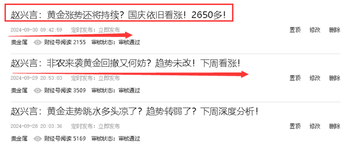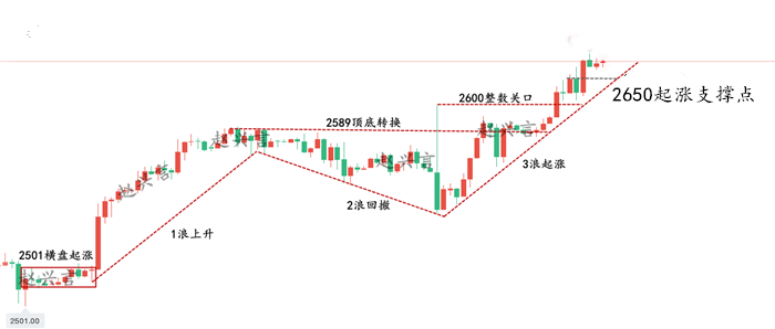 分析不能当饭吃,却是吃饭不能丢掉的家伙,或许你觉得看到兴言策略时已经为时已晚,那么告诉兴言你,当你后悔莫及时正是从头开始时! 这个市场没有谁可以完全预测行情,却有人会用踏实的分析努力避开风险。如果你看了兴言每天连载的文章,我相信你会对行情有新的认识与见解! 日内黄金走势分析! 周一亚市盘中,金价最低跌至2648美元/盎司附近,较稍早触及的日内高点2666.04美元/盎司大跌近18美元。而也到达了我们早间所提到的2650一线,也是我们周评所提到的早间进场多单的点位 ,短线的回撤并不能改变当前多头的趋势,兴言也一直在提及当前趋势看涨的观点,而回撤能否上升破高才是我们关注的重点! 今天只是要关注到