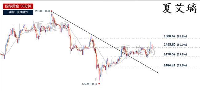 什么样的行情才是最难做的行情?明明看着行情在涨,可就是鼓不起勇气跟上节奏,总在反复究竟与犹豫中与你的利润失之交臂,除了一声叹息,什么都没有改变,或许老天也有眷顾的一天,黄金走势一波回调给了你机会,可是回调是否是行情的翻转? 无论行情怎么动,总有一个理由阻止你, 市场策略那么多,那一条才是适合你的投资之道?名家大师轮流转,哪一个才是你的千里马?与其感慨交易无常,不妨静下心来看看艾璃如何用经验老道的分析打败踌躇不前的犹豫,用精准的进场点位捕捉一次波动中的利润。 风险事件解读:周初如期反弹预测一致,而给予黄金支撑的则是这两点! 1、周一(10月14日)欧洲时段,金价反弹,回归1490美元上方,并逼