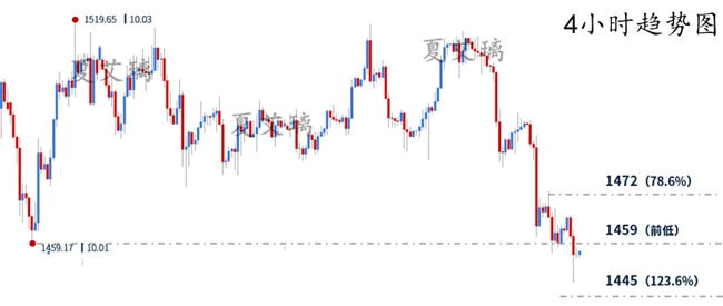 早上好,我是艾璃,小舟如何在大海中生存?唯有铁索连环。昨天的交易思路到目前为止,我们来做个小回顾,首先就是昨天提示的1468下的空单,国际黄金直接下跌到1448,还是有些出乎意料的,随后凌晨因为底部支撑的影响,黄金小幅反弹,一路反弹至1457一线,那么在这波反弹之后,我们决不能盲目跟多! 首先我要说明一下,20美金的延续跌幅,发生在昨天下午18点之后,对于这种不可抗力的走势和消息面影响,我们能做的只有经历, 毕竟国际市场就是得力于消息和数据的影响才演变的波动,这也是一大优势,我从来不会觉得忽如其来的消息是导致自己交易被动的主要原因,就像现在各位最关心的就是,国际黄金是不是已经彻底凉了? 突发