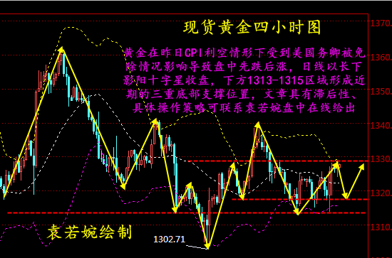 昨日晚间非农数据公布后,结果喜忧参半,就业人口增幅大幅超出预期,而平均小时工资增速不及预期,抵消了前者所产生的积极影响。报告公布后,美元大幅震荡,但最终还是选择掉头向下,金价则借势反弹。数据公布后下跌到1313一线随后上涨一直至1325美元,最终停盘于1323。若婉昨天在文章中也着重强调过这几个点位,虽然说非农