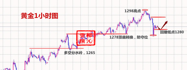 晚上的时间才户感觉到有一部分属于自己的,把心事依托于此,我们可以以文会友,我在这端抒写行情的种种变化和应对交易记录,那边的你花时间阅读我的文章获得的不只是交易上的启发和了解,更是心理上的安抚和宽慰。 行情是一样的,但是交易时的心境是不一样的,实力有高下,心态有还坏,就看你是否有自己独特的交易方式在黄金交易市场越走越远。 我是沁雯。 1.黄金原油前途一片大好,后市展望 黄金方面,技术面各个方面都比价偏向多头走势,黄金千三关口迎来调整,绝对不是巧合,前面着重强调过此节点的重要性,在这个位置有着很多的可能性,周五回撤令金价未能有效突破并企稳,而是大幅回撤至1280下方,不过好在金价最终收复部分跌势