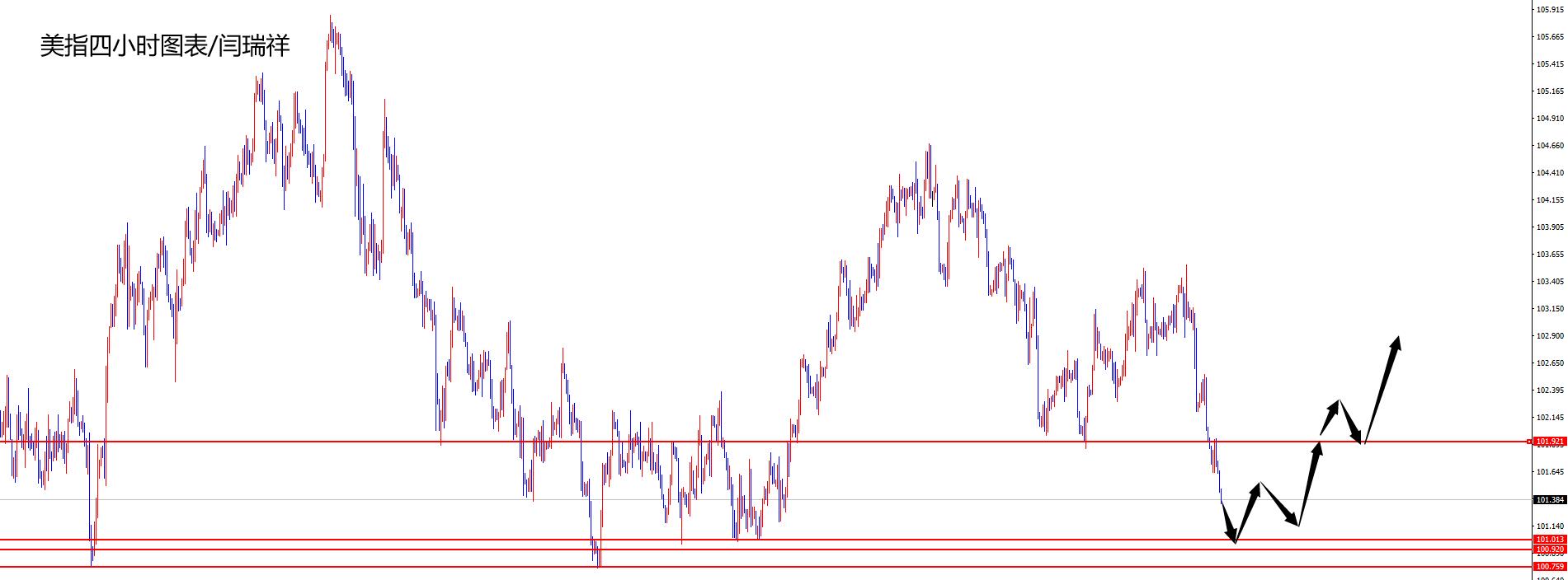【美元指数】 美元指数方面,上周五价格总体呈现下跌的状态,当日价格最高于103.164位置,最低下跌至102.199位置,收盘于102.253位置。回顾上周五美元指数总体波动状态,早间开盘后价格短线震荡运行,日内价格迟迟没有打开方向,晚间收到非农数据及失业率的影响价格快速下跌,晚间延续性下跌,目前看下方102区域是大级别上涨趋势线下边缘区域,所以后续我们重点关注此区域获得支撑上涨,上方暂时关注102.50-103区域。 美指102.00-10区间多,防守5美金,目标102.50-103 【黄金】 黄金方面,黄金上周五价格总体呈现上涨的状态,当日价格最低于1909.41位置,最高上涨至1934