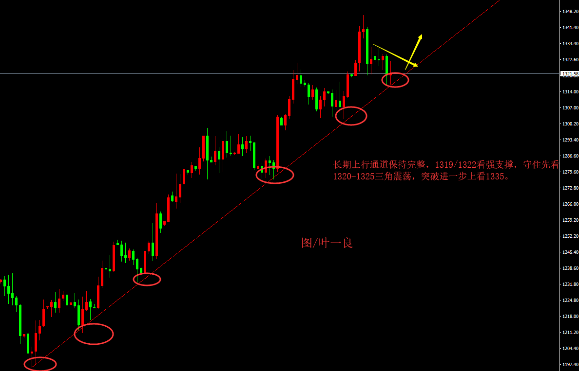 昨日的策略还是非常成功的,详细文章见叶一良:2.7黄金原油美盘分析,上市公司财务报表分析。 昨日文章更新的比较晚,实盘朋友1305已经进场多单,随后文章也提示朋友们回落可以继续跟进,点位建议在1308左右,后市价格也如期回落。黄金横盘三天一波冲了下来,下跌容易上涨慢,主要在于节奏,震荡上行的低点抬高很重要,当晚也是介于这一点,提前判断二次底给出多单,把握非常完美。 这一轮修正已经结束,如果跌破1300,就不是回调那么简单的事了,这一点我们之前在文中也反复提到过,朋友们要注意。 目前的多单仍在手中,后市只需继续看高即可,朋友们如果会做波段,把握超短线,也可以做尝试,但操作起来比较麻烦,文中一时