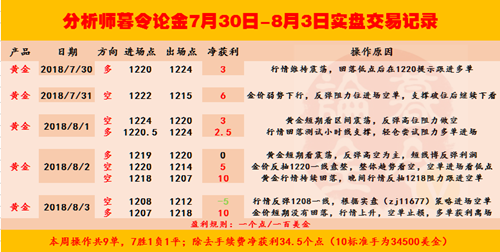 —— 导语 看似简单的买涨买跌,但还是很多投资者为之苦恼,甚至付出惨痛的代价,内行看门道,外行看热闹。投资就像开车一样,开车谁也不能保证不会出事故,但是只要我们遵守交通规则,不酒驾不违规,带好刹车控制好风险,我们就可以将事故发生率降到最低,甚至不发生。我们做投资也一样,只要严格执行操作建议,控制好仓位,严格止损,外加精准的操作点位,我们就可以最大程度的提高赚钱的胜算,使得风险最小化,收益最大化。 黄金走势分析 黄金周三下探回升收盘小阳线,亚盘先行反抽1215.80附近承压,欧盘回落,美盘惯性的回踩1206低点守稳反弹,最终还是没有打破本周的窄幅整理区间,已经连续三个交易