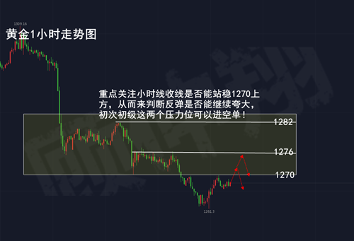 疾风知劲草,烈火炼真金。人的性格中的贪婪、恐惧,犹豫,果断,勇敢,谨慎、从众、等在市场的交易中暴露无遗。一定程度上来说,赢利是对你交易过程中性格优点的奖赏,亏损是对你交易过程中性格缺点的惩罚。技术上好学,心理关难过。人的本性在市场的涨涨跌跌中一个个显现出来,控制好自己的心理,认清人的本性,远离羊群,站在大多数人的对面,市场中你就已经赢了一半。 黄金市场行情分析 昨日国际金开盘在1267.57位置,早间开盘冲高1270附近后开始回落,亚盘一路走跌,欧盘反抽1265后晚间再次破低,触及1261.31美元企稳,夜间盘面面震荡走高收线在1267.02美元位置,阴十字收线。继本周周一出现十字后本轮