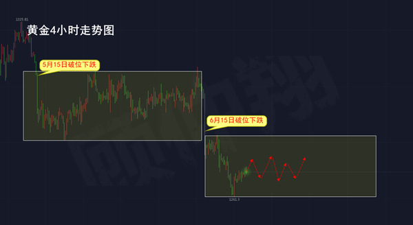 疾风知劲草,烈火炼真金。人的性格中的贪婪、恐惧,犹豫,果断,勇敢,谨慎、从众、等在市场的交易中暴露无遗。一定程度上来说,赢利是对你交易过程中性格优点的奖赏,亏损是对你交易过程中性格缺点的惩罚。技术上好学,心理关难过。人的本性在市场的涨涨跌跌中一个个显现出来,控制好自己的心理,认清人的本性,远离羊群,站在大多数人的对面,市场中你就已经赢了一半。 黄金市场行情分析 5月初都是震荡盘,反复围绕区间波动,月中破位走低,出现下跌的时间点都是在15日,而整个五月出现较大的波动的走势也就是15日这一个交易日。六月份的行情虽然没有走完,但大的消息面冲击已经考验过盘面价格波动,而6月份真正的较大幅度波动的