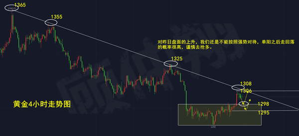 不同的持仓点位,带给我们的是完全不同的思路,老人常说别让屁股决定脑袋,可是在市场上往往是点位决定了思想,高位做空的朋友坚信黄金会跌破1300,于是一路下跌一路信心满满补空,高位套着多单的朋友也坚信1300关口支撑强势,一路下跌一路低位补多,结果大家都知道,仲翔并不认为做空者值得称赞,做多的人需要批判,这个市