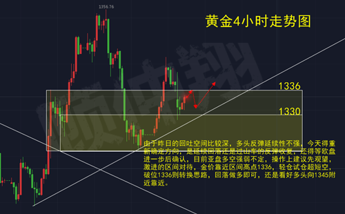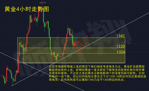 美国股神巴菲特曾经说过一句广为流传的话:投资要尽量避免风险,保住本金。个人认为,对投资者来说,风险控制强调到什么程度也不过分。因为本金没有了,你在市场的翻身的机会也就没有了。投资者在追涨的行情中一定要注意止损,这是有效的风险控制手段。 黄金市场行情分析 黄金,在昨天黄金走出大阳收线,从1325位置开始反弹