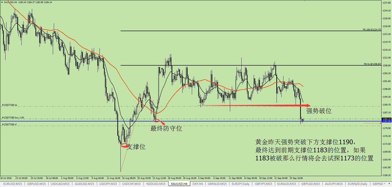 美元指数昨天强势下破 95.151 的支撑位,这与我昨天所预测的美指反弹不能继续的判断吻合,而在给大家的策略也是破位顺势跟进,所以昨晚的收益是比较可观的,今日我们可以继续关注美元指数的空头方向。 此外,昨晚美国 9 月 PPI 年率录得 2.6% ,不及市场预期的增长 2.7% ,加上前日特朗普再度批评了美联储的加息政策,而他称美国通胀没有上涨迹象的观点也在昨晚生产者物价指数下降中得到印证,这在短期内对美指的反弹形成强劲打压。今晚有美国 CPI 年率的公布,在所以整体上在数据公布前,市场对美指的多头情绪并不 “ 友好 ” 。 从美指 4 小时走势图上看,布林带的开口趋势未见任何收拢迹象,