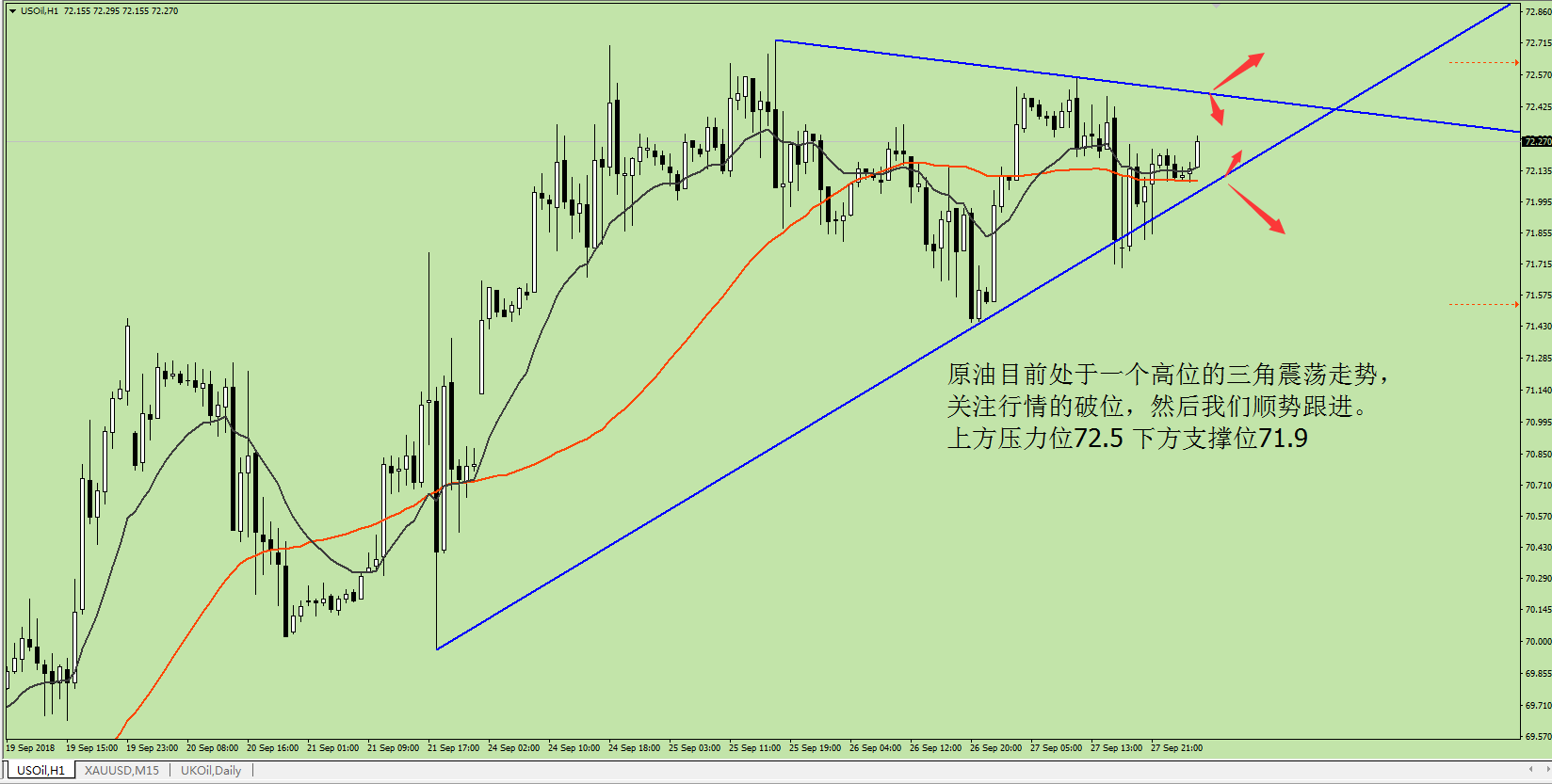 北京时间周五 (9 月 28 日 ) ,原油价格虽高开于 72.18 美元 / 桶,但截止目前欧市盘中,油价日内振幅仅 0.37% ,就原油这个品种来说已经是很低了。此外,今日伊朗总统鲁哈尼称伊朗已经与欧盟达成了一项能够与伊朗进行原油交易的 “ 特殊机制 ” 。老王相信,若欧盟对伊朗原油出口 “ 开绿灯 ” ,那么美国所要求的全面禁止从伊朗进口原油的制裁力度将大幅缩减,对当前油价的涨势形成遏止。 欧盟拟对伊朗 “ 开绿灯 ” 周五凌晨,欧盟理事会主席图斯克对外表示,伊核协议创造了针对伊朗行为行为进行对话的空间,所以只要伊朗仍遵守核协议,欧盟就会继续致力于维护协议。随后,伊朗总统鲁哈尼