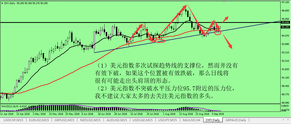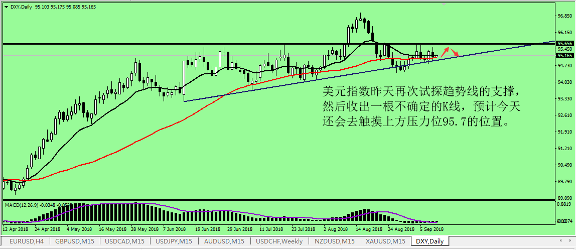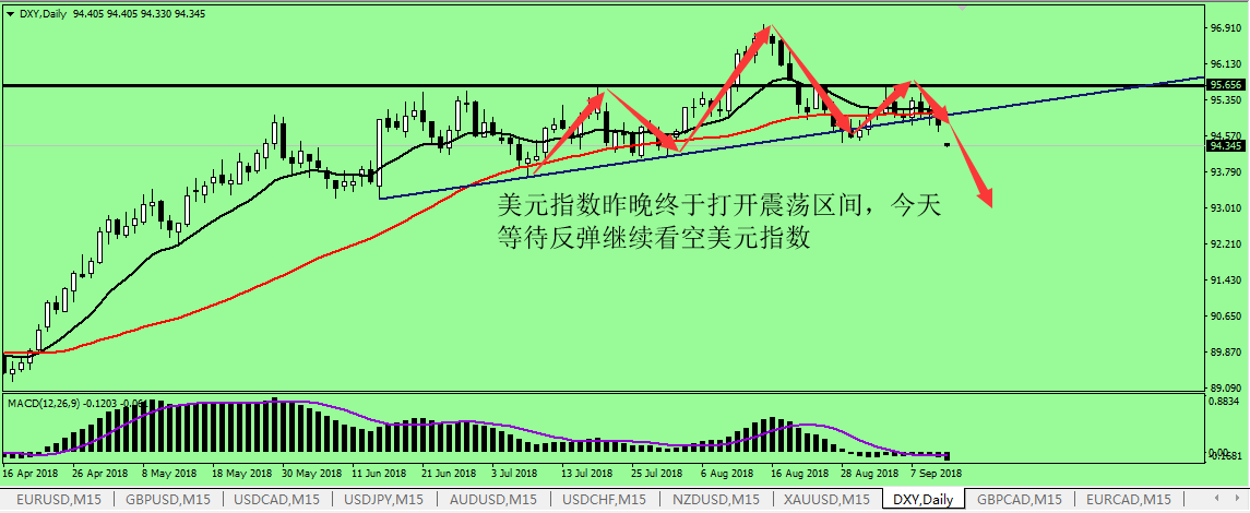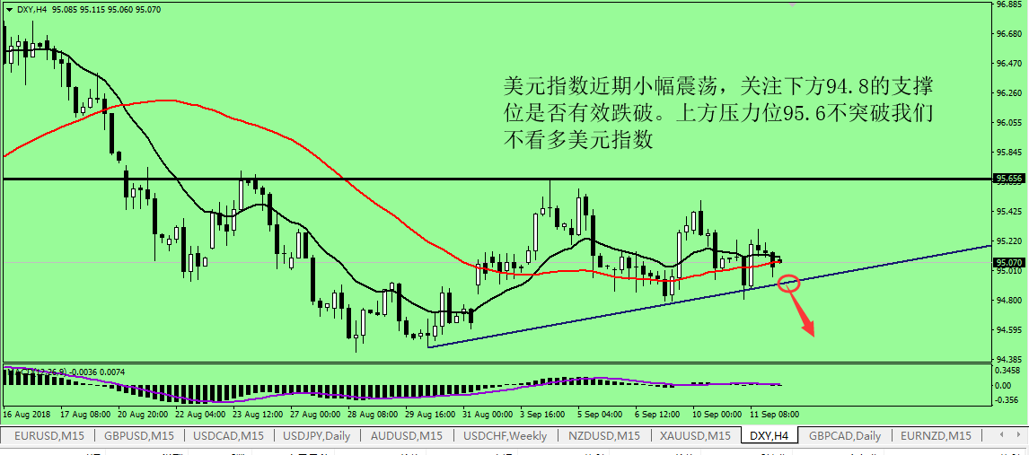 熟悉我的朋友都知道,我对美指的观点大多持负面看法,而在行情中我们也看到,近期美元指数的走势依旧是震荡、震荡、再震荡。要知道在当前美国制造业持续扩张,但美国贸易逆差依旧扩大的局面下,美元指数要想在短期内 “ 一飞冲天 ” 是绝对不可能的。 美墨贸易协议完成 北京时间周二 (9 月 11 日 ) ,据外媒透露,美国与墨西哥的自贸易协定进入到收尾阶段,并且根据墨西哥财长讲话称,即使加拿大无法与美国协调一致,墨西哥也愿意与美国达成双边贸易协定。老王发现,上周该墨西哥财长还表示,在加拿大完成会谈之前,北美自由贸易协定不会达成协议,但今日转眼就改变了策略,称 “ 美墨无法分开 ” 。表明墨西哥已