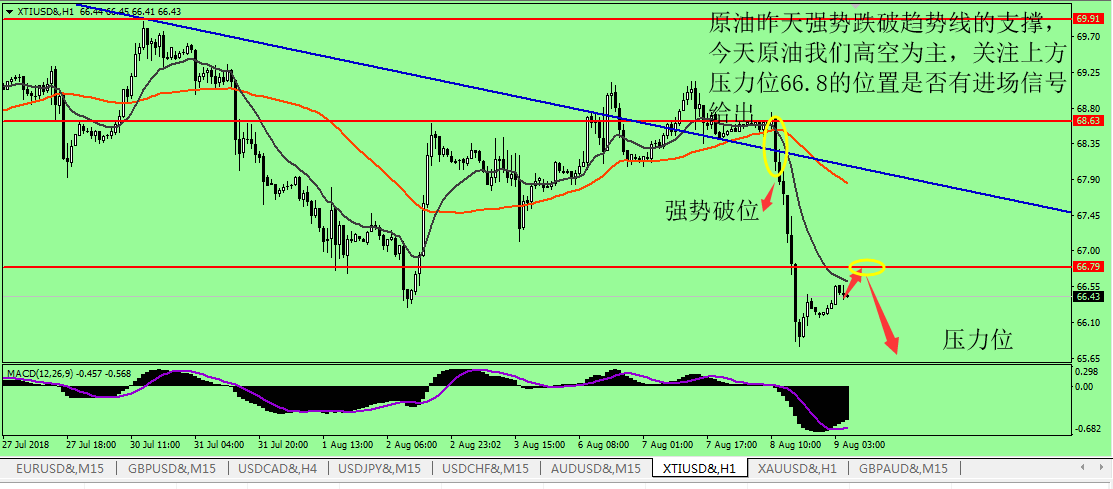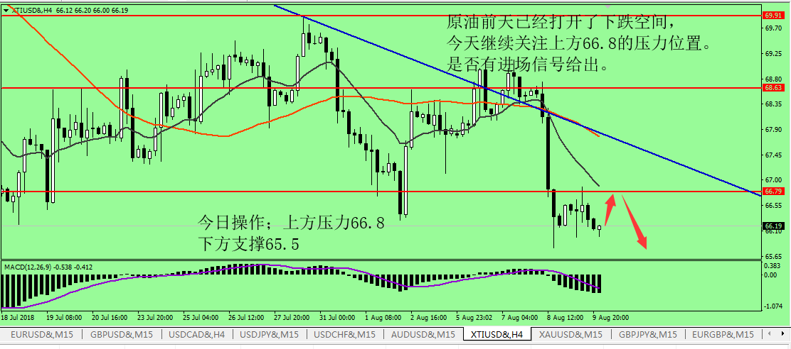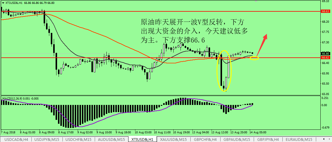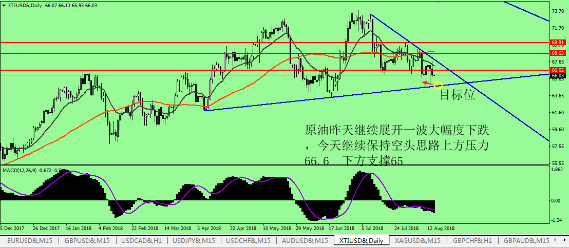 昨晚油价在触及 68.37 美元后突然暴跌,一方面可以看到油价上方 68.5 美元的强劲压力位,另一方面也说明当前市场上原油空头仍占据主导地位。今日凌晨,美国石油协会 (API) 公布了上周美国原油库存数据,不料该数据显示美国原油库存大幅增加 366 万桶,令原油空头幅度加大,原油价格一度闪跌至 66.51 美元 / 桶。 北京时间周三 (8 月 15 日 ) 凌晨,美国石油协会公布了 8 月 10 日当周美国原油库存数据,数据显示,上周美国原油库存增加 366 万桶,与市场预期的降低 266.7 万桶完全相左,汽油库存降低 156 万桶降幅超出市场预期,精炼油库存上升 194 万桶,较