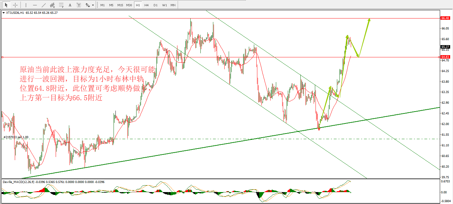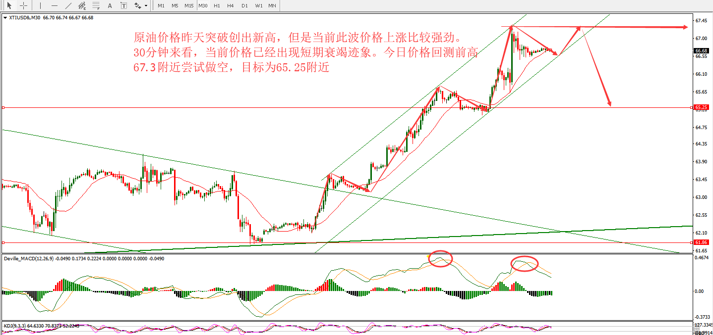 下午好,由于中东地区叙利亚局势的紧张,引发市场疯投原油的局面出现,加上中国美国贸易冲突的缓解,昨日油价提振幅度极大,日内涨幅高达3.3%,创下两年来的最大当日涨幅。 王老师认为,昨日原油的暴涨不能说是意外,我在昨天文章及薇搏上对中东局势复杂化对油价的利好已经分析过,在此就不在累赘,今日油价冲高回落,我个人