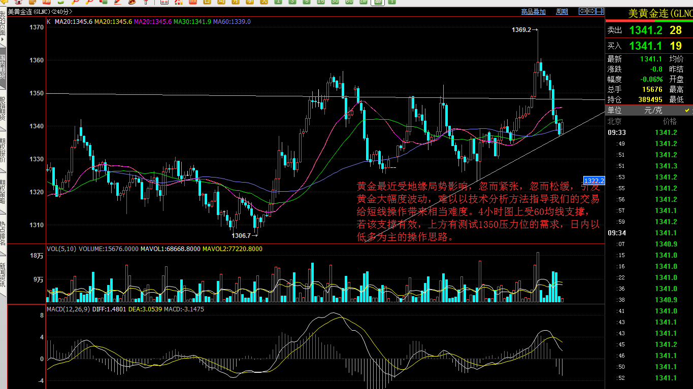 大家下午好,因受近期地缘局势影响,忽而紧张,忽而松缓,黄金价格大幅波动,加大了我们在短线中做单难度,想起昨天我给的超短线高空低吸的单子还能有收益,现在看来是运气站到我这一边。今日金价震荡反弹,王老师建议大家关注下方1337附近的支撑,只要支撑不破,那么我们都可以认可黄金反弹的趋势。 地缘紧张情绪波动 由于