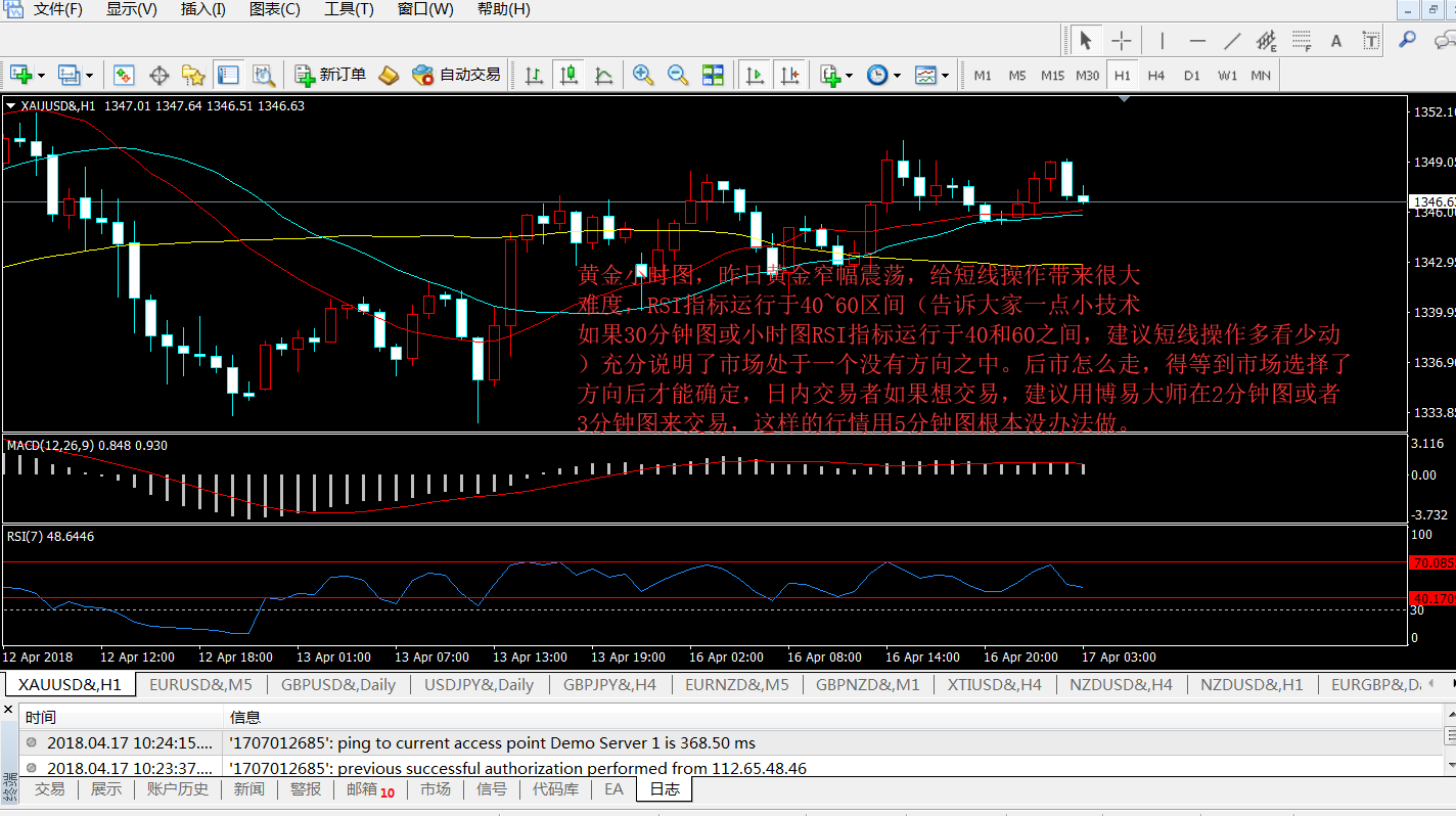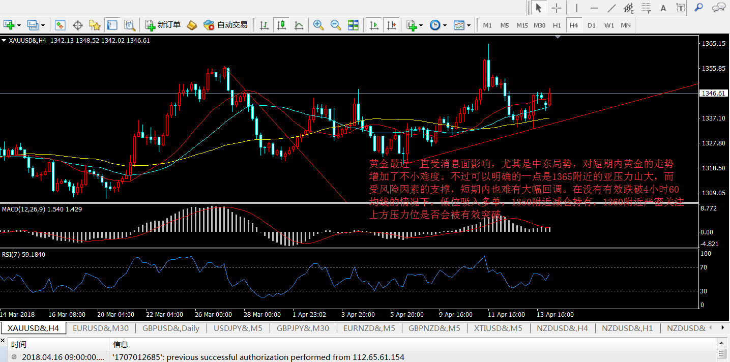 首先来看黄金,就在上周末(4月15日)美国驻联合国代表黑利表示美国已经做好了进一步制裁俄罗斯的准备,隔日(4月16日)美国白宫发言人桑德斯在讲话中肯定了黑利的态度,但是万万没想到,日内美国总统特朗普突然叫停了对俄罗斯实施新一轮制裁的计划。因特朗普的多变,引发市场投资者不安,这也加重了我们操作黄金短线的难度。 王