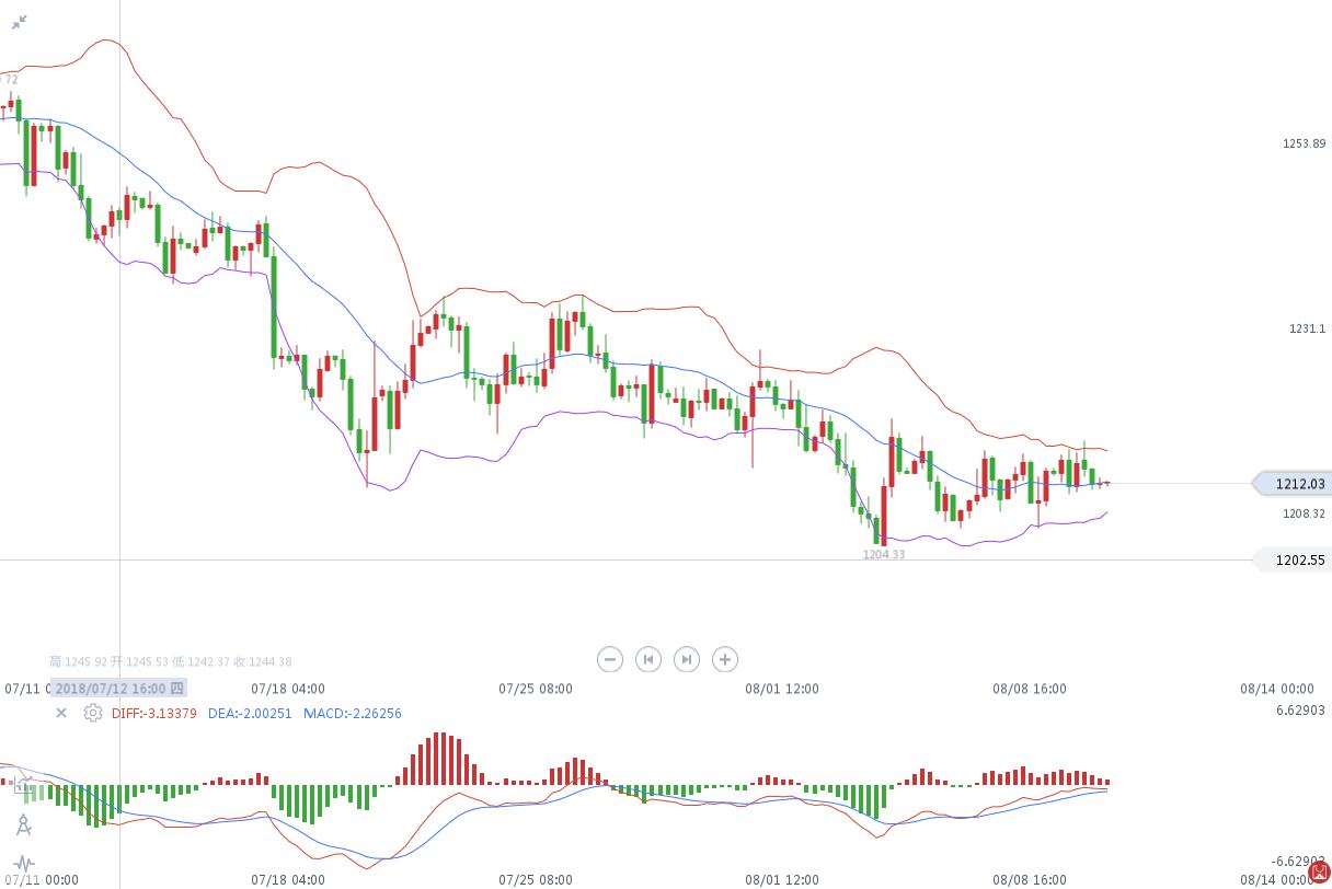每天都是一个新的开始,不要带着昨天的悲伤来浪费今天的光阴,调整好心态来迎接崭新的一天!投资之路不平直,行情会有许多拐点处。没有拐不过去的点,只有拐不过去的人。行情对待每个人都是平等的,有时候态度决定一切,你对待每一次的操作是什么样的态度市场都会知道,我们不能改变世界,但可以改变我们的心态!遇顺境处之淡然,遇逆境处之泰然! 周二,趁着美元走软,现货黄金震荡上行,收复昨日部分跌幅,此外,美国对伊朗展开制裁、以及美国和中国贸易紧张局势升级也在抬升避险情绪。截至收盘,期金收涨0.26%,报1218.8美元/盎司。 美国对伊朗的制裁从北京时间周二开始生效。美国总统特朗普表示,对伊朗制裁将是有史以来实施